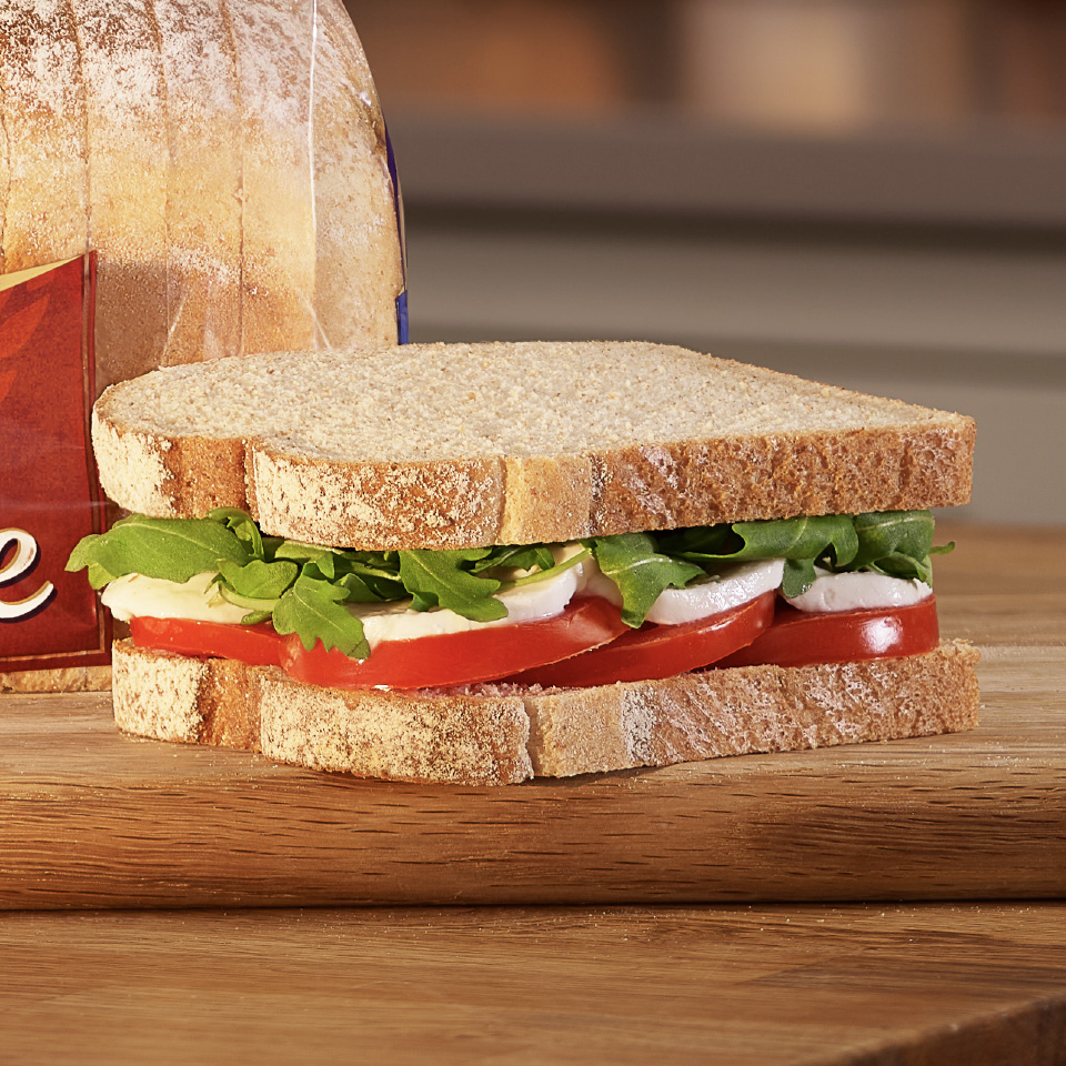 Farmhouse shape, 50/50 softness. A deliciously thick slice that’s made for bigger bites and bolder sandwiches with 50% white flour and 50% whole grain flour.