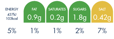 ENERGY | 994kJ/235kcal | 437kJ/103kcal | 5% |